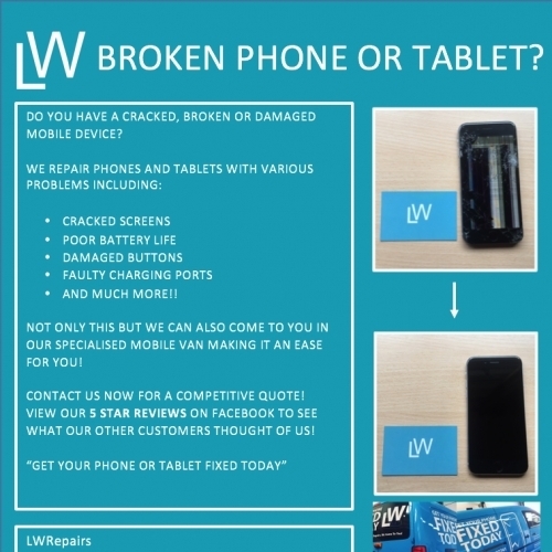 At LWRepairs, we have been providing a professional and fast turnaround service for many years in the Southampton and surrounding area which is great for those who can't live without their phone or tablet - everyone knows someone like this! No matter the job, we're more than capable. We're passionate about our work, and this means that you're guaranteed quality workmanship. Not only this, we take pride in our service; we strive to exceed the expectations of every customer that we cross paths with. We take on all kinds of repairs, from cracks screens to poor battery life. There isn't much we can't fix! In addition, we don't just limit ourselves to Apple™ products. We repair all brands including, but not limited to: Apple, Samsung, HTC, Nokia and Huawei. Due to the size, it is very easy to let your tablet slip out of your hands and that is why we have trained to repair tablets as well as mobile phones. We offer mobile phone unlocking along side our repairs, a postal service and a "we come to you" repair service. This means wherever you are in the UK we can repair your device, all you need to do is simply send your device to us and we do the rest for you (postal service). With our "we come to you" repair service, you can relax at home or be at work while we repair your mobile device or tablet right outside in our custom van. Our van has been equipped with all the correct tools and functionality so that we can maintain our professional and guaranteed quality workmanship while on-the-go. We like to make your experience using us convenient and that is why we invested in our own unique messaging service to allow us to update you on your repair through email or SMS. Consequently, this leaves you without your phone or tablet for as little as possible because you receive an automatic message instantly after your device has been marked as repaired and ready to collect. Not only this, we offer a great range of accessories to customers across the UK. From phone chargers to glass screen protectors, we have everything you need to complement your device. At LWRepairs, we believe that only the best is good enough, and that's why every product that we provide is tested extensively before going on sale. Choose LWRepairs for an amazing service today. We go that extra mile for you!